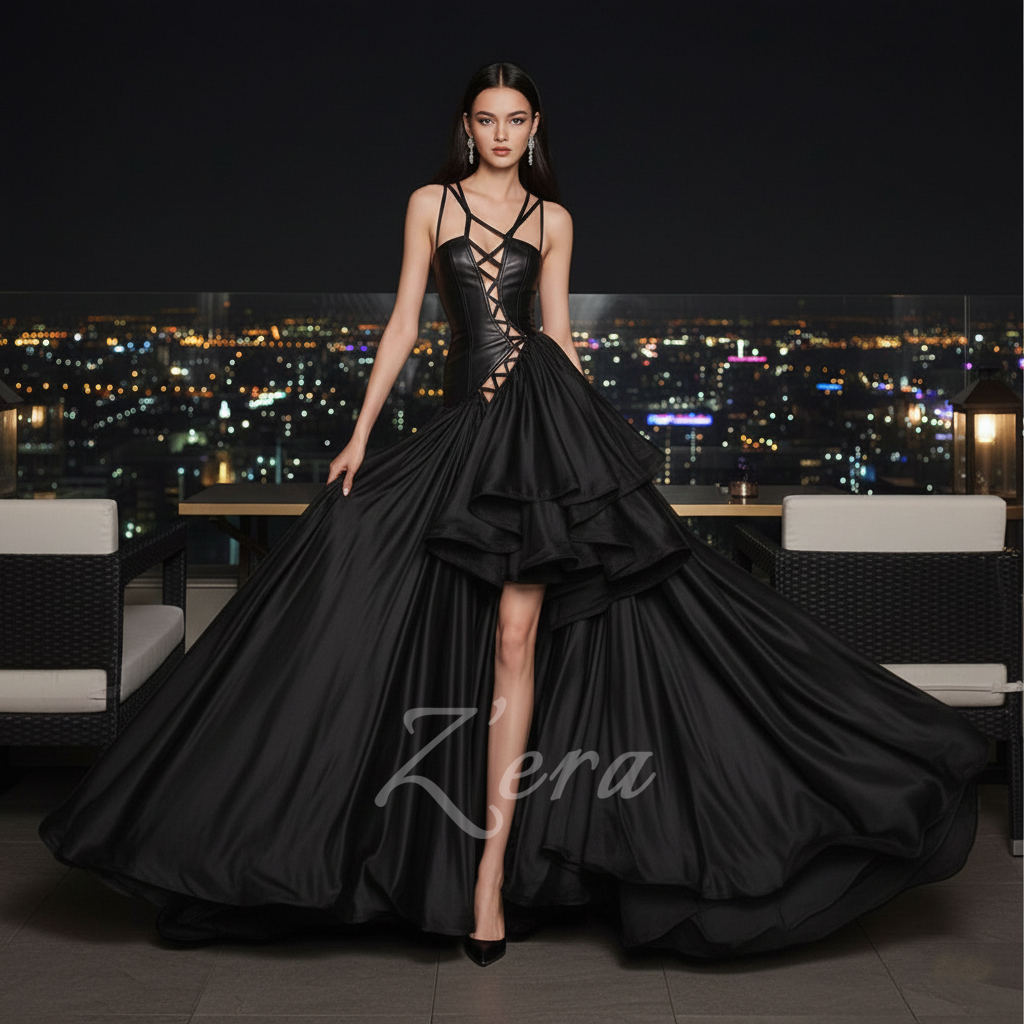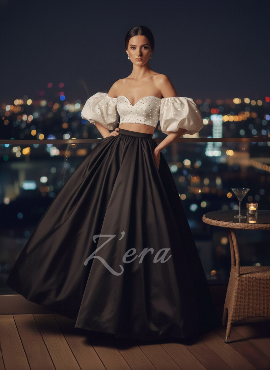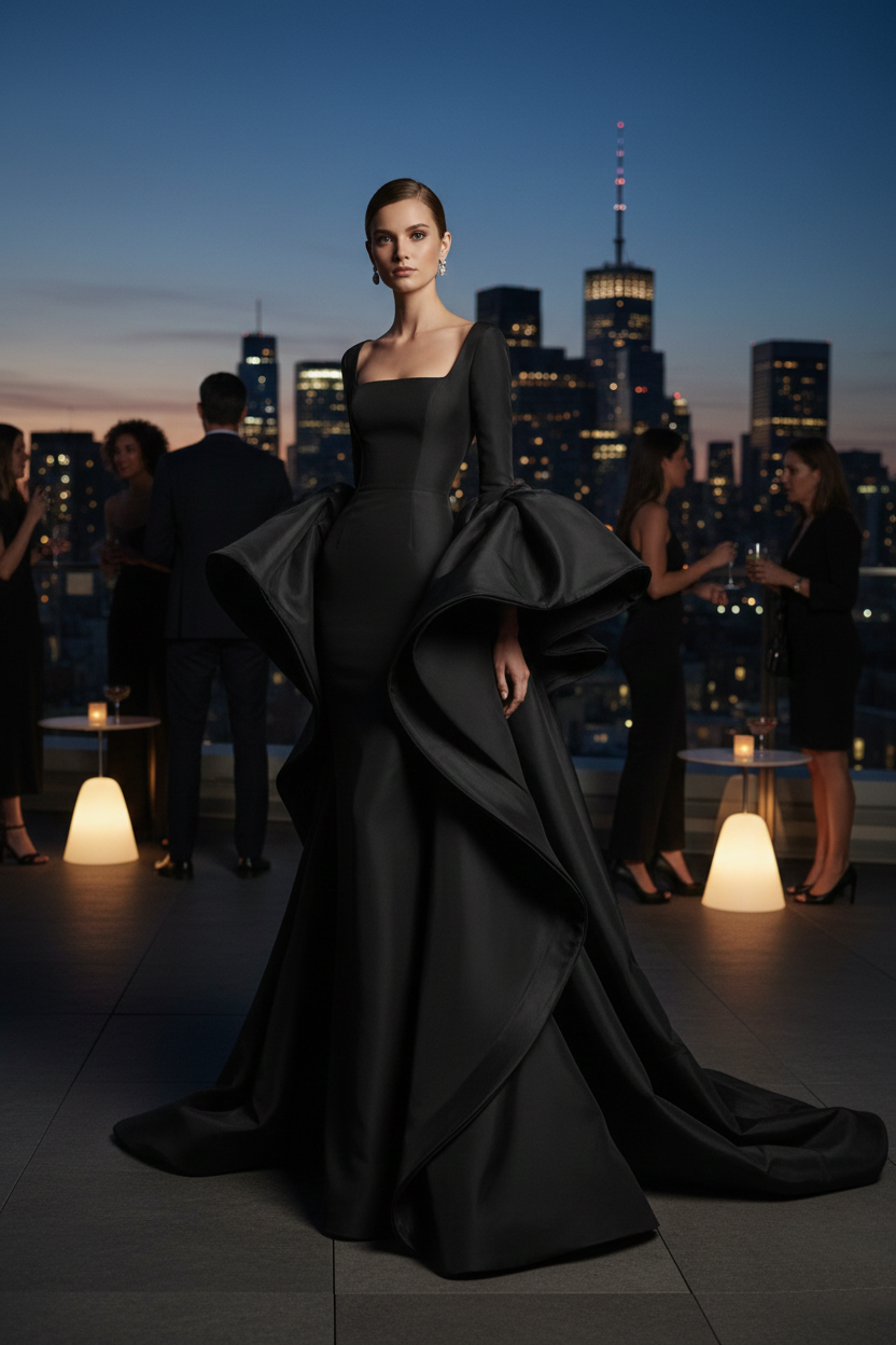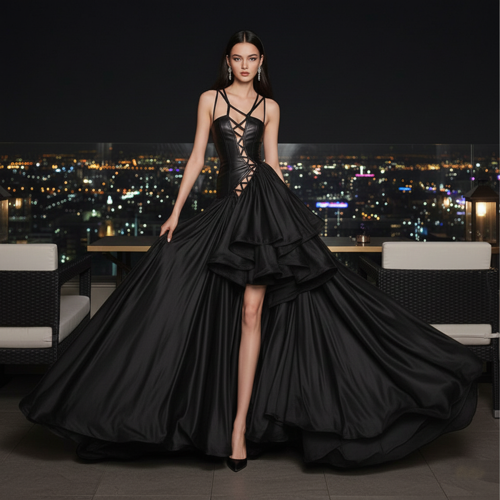 Parlak tafta kumaşın şıklığını gecenin kraliçesine göre tasarladık.