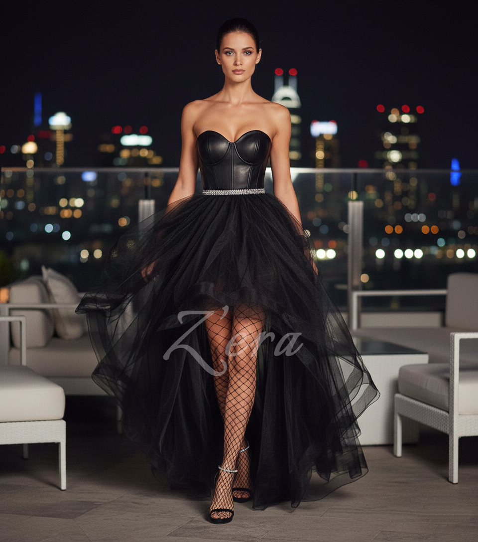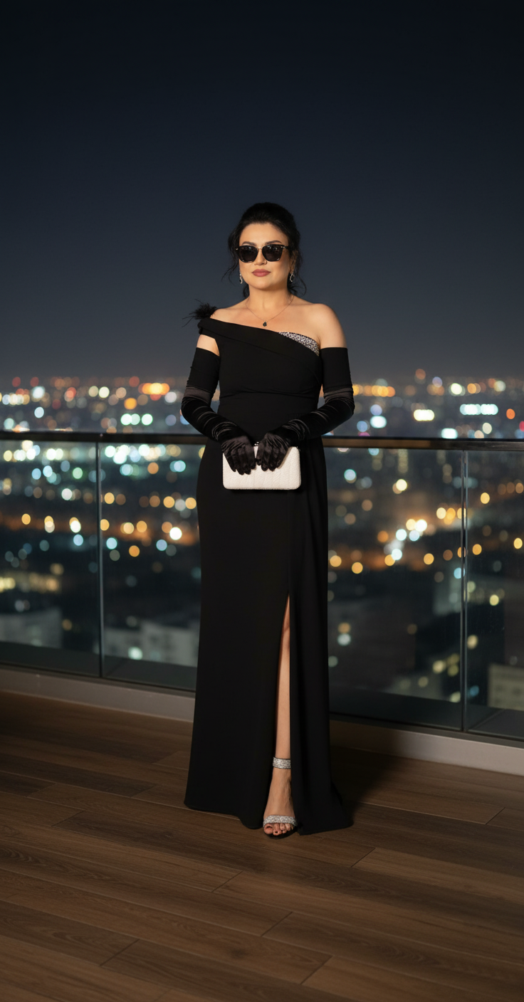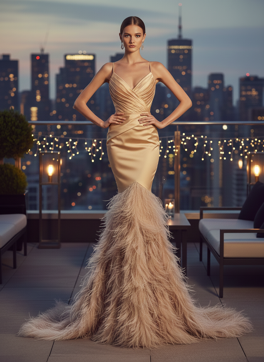 Parlak tafta kumaşın şıklığını gecenin kraliçesine göre tasarladık.
