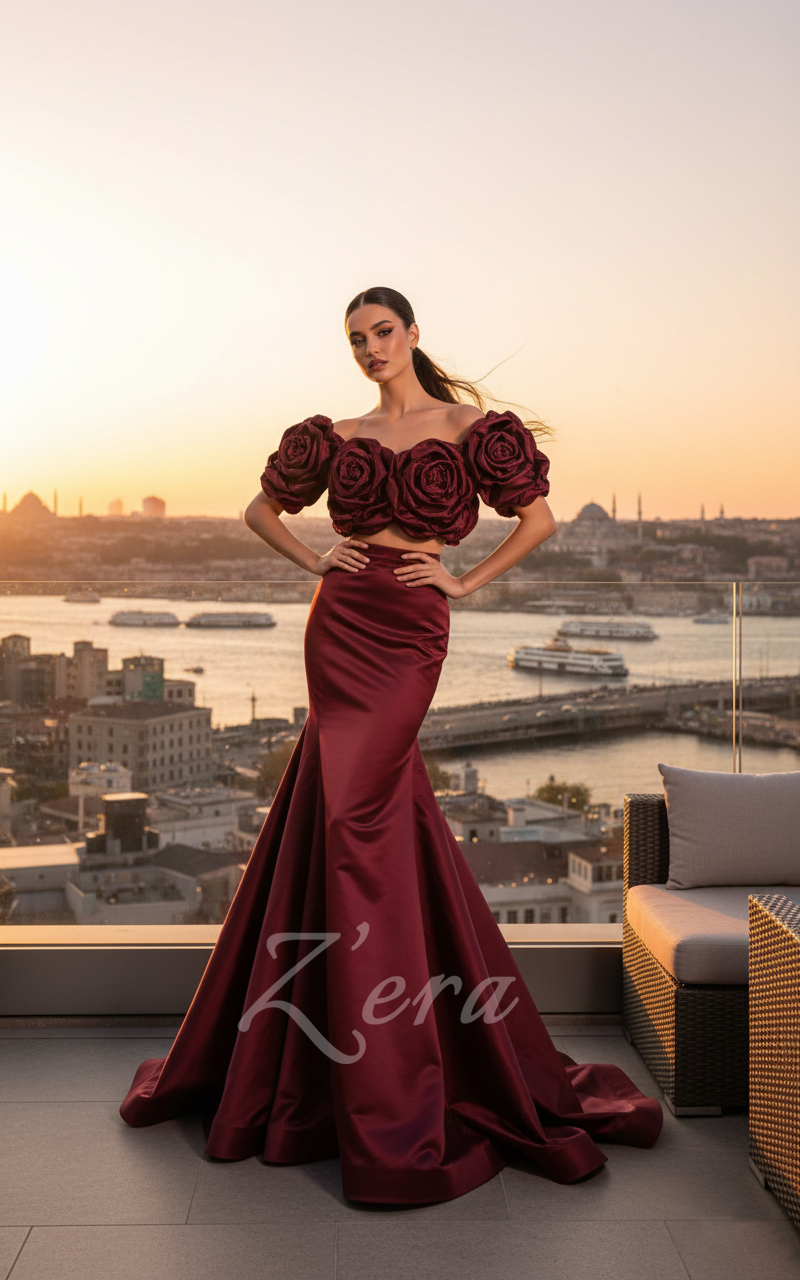 Gizemli çöl renklerinde şifon ve payet kombinasyonu ile desert rose modelimiz.
